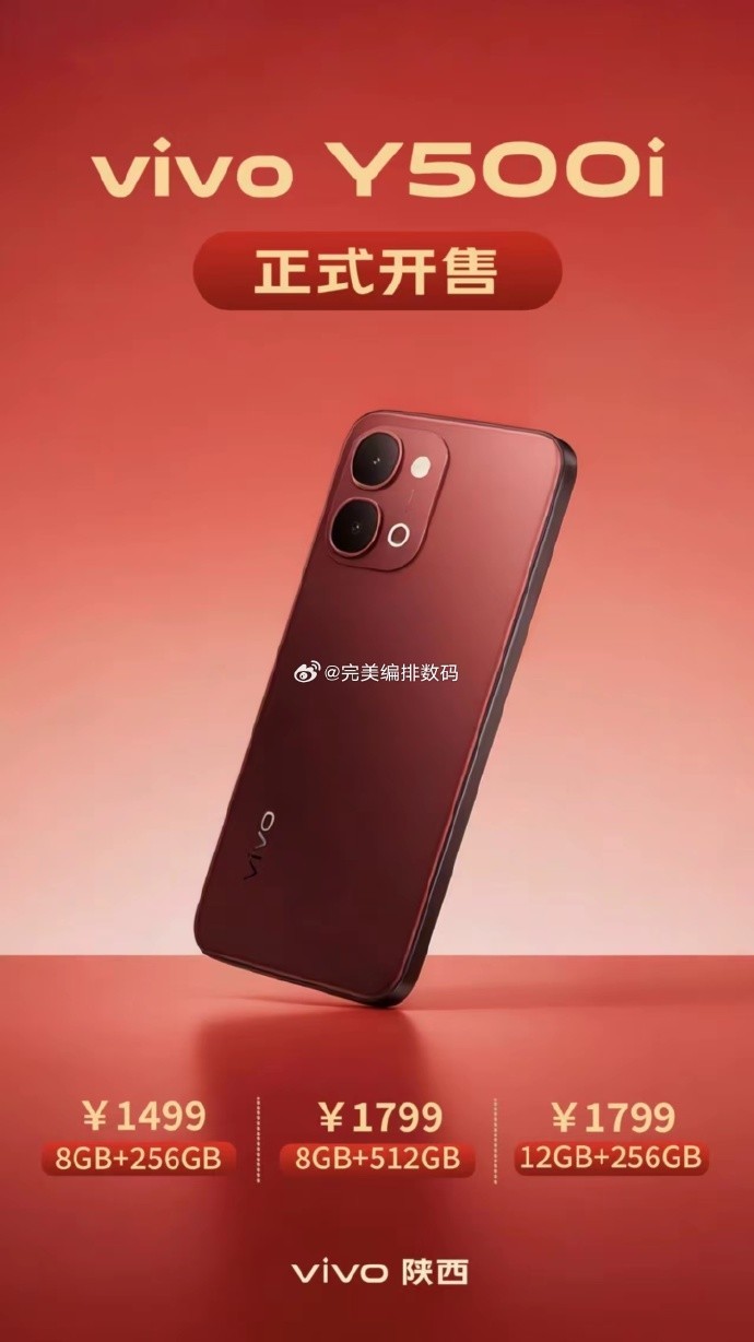【CNMO科技消息】12月30日,据博主“完美编排数码”分享永崋证券,vivo陕西已经公布了vivo Y500i的售价:8GB+256GB版本售1499元,8GB+512GB和12GB+256GB版本售1799元。